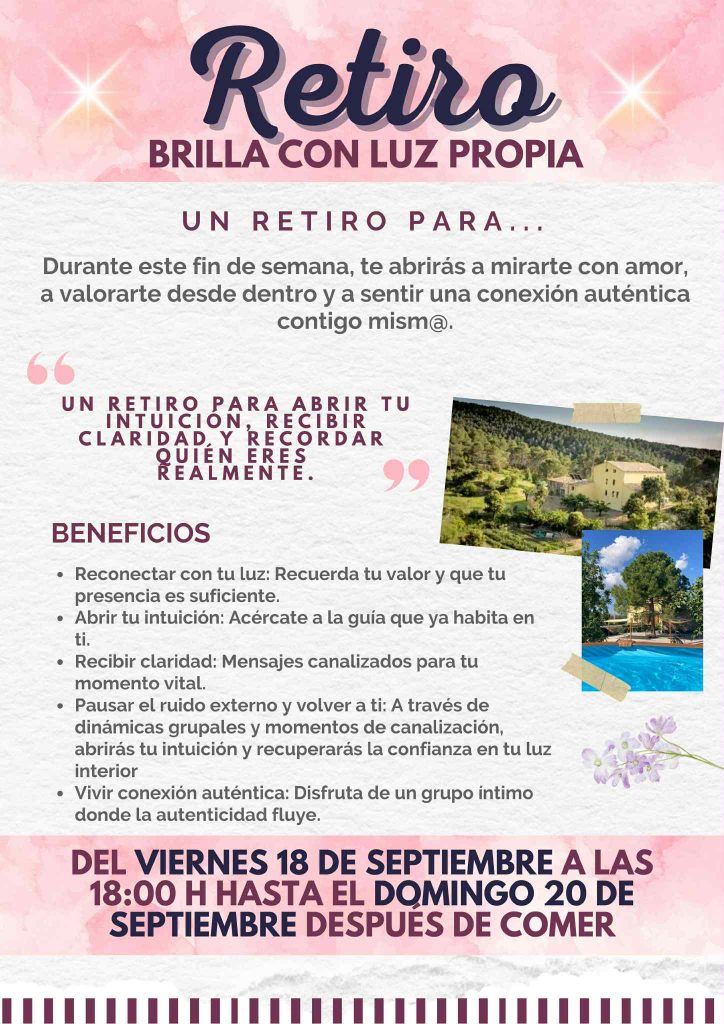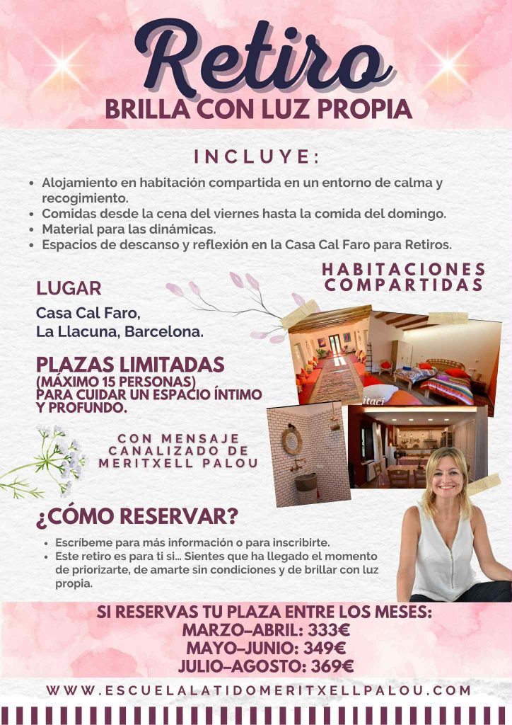 Si sientes que este retiro resuena contigo, escríbeme y te envío toda la información para reservar tu plaza. Tal vez este sea el momento de brillar con tu propia luz.